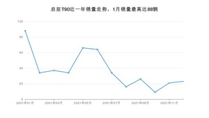 2021年12月,启辰T90销量为23辆,同比下降83.45%,环比增长9.52%。1-12月份,启辰T90销量为452辆,同比下降86.6%。