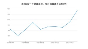 2021年12月,瑞虎e销量为173辆,同比增长13.07%,1-12月份,瑞虎e销量为851辆,同比下降38.64%。