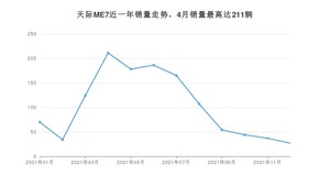 2021年12月,天际ME7销量为27辆,同比下降42.55%,环比下降27.03%。1-12月份,天际ME7销量为1237辆,同比增长1%。