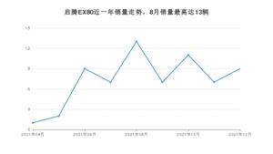 2021年12月,启腾EX80销量为9辆,同比下降70.97%,环比增长28.57%。1-12月份,启腾EX80销量为66辆,同比下降37.74%。