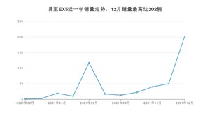 2021年12月,易至EX5销量为202辆,环比增长304%。1-12月份,易至EX5销量为493辆,