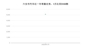 2022年1月,六安市汽车总销量为5102辆,同比增长8.88%。