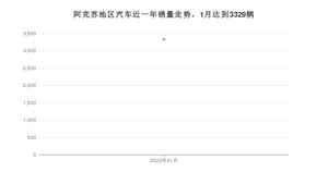 2022年1月,阿克苏地区汽车总销量为3329辆,同比增长8.54%。
