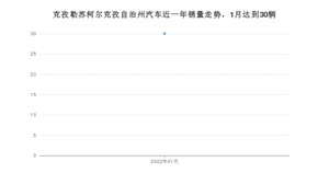 2022年1月,克孜勒苏柯尔克孜自治州汽车总销量为30辆,同比下降69.07%。