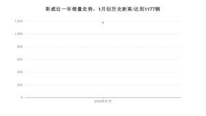 在国内市场上,斯威在2022年1月的销量为1177辆,同比下降31.33%,