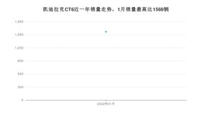 2022年1月,凯迪拉克CT6销量为1569辆,同比下降35.56%,
