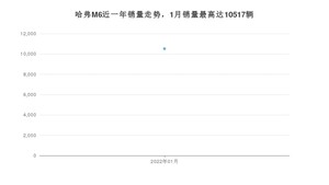 2022年1月,哈弗M6销量为10517辆,同比下降58.22%,