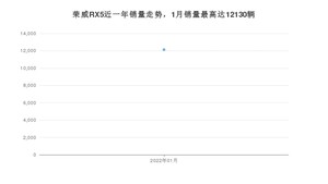 2022年1月,荣威RX5销量为12130辆,同比下降6.59%,