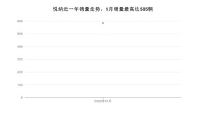 2022年1月,现代品牌总体销量达到37176辆,其中悦纳销量达到585辆,占品牌总销量的1.57%。