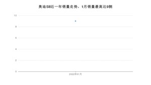 2022年1月,奥迪S8销量为9辆,同比下降40%,