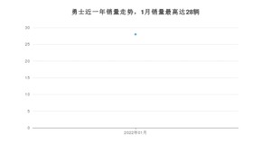 2022年1月,勇士销量为28辆,同比下降40.43%,