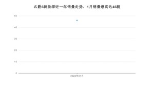 2022年1月,名爵6新能源销量为46辆,同比下降71.78%,