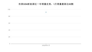 2022年1月,传祺GS4新能源销量为92辆,同比增长43.75%,