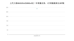 2022年1月,上汽大通MAXUS EUNIQ 5销量为287辆,同比下降1.37%,