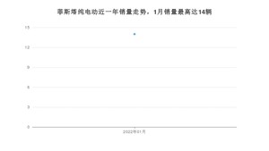 2022年1月,菲斯塔纯电动销量为14辆,同比下降74.07%,