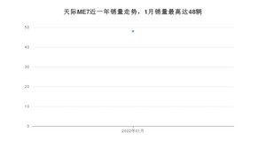 2022年1月,天际ME7销量为48辆,同比下降31.43%,