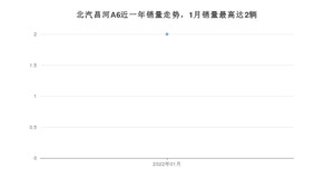 2022年1月,北汽昌河A6销量为2辆,同比下降97.53%,
