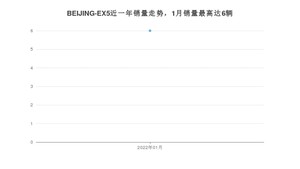 2022年1月,BEIJING-EX5销量为6辆,同比下降87.5%,