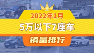 2022年1月的乘用车销量数据已经出炉,据众车网汽车行业数据监测显示,1月国内乘用车市场销量达到222.66万辆,同比下降7.22%,环比增长0.01%。每月各个细分市场的销量排行榜也成为了大家所关注的话题,今天众车网为大家带来了2022年1月5万以下7座车的销量排行榜单,有哪些车型能跻身销量榜呢?下面我们直接看数据。