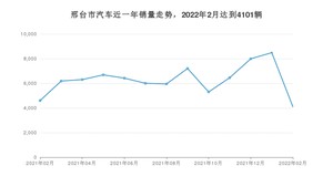 2022年2月,邢台市汽车总销量为4101辆,同比下降10.81%,环比下降51.67%。2021年02月-2022年02月份,邢台市总销量为81662辆,同比增长6.69%。在最近1年中,邢台市销量在2022年01月达到最高,销量为8486辆。