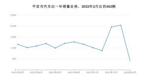 2022年2月,平凉市汽车总销量为402辆,同比下降65.37%,环比下降80.28%。2021年02月-2022年02月份,平凉市总销量为15398辆,同比下降6.98%。在最近1年中,平凉市销量在2022年01月达到最高,销量为2039辆。