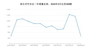2022年2月,绥化市汽车总销量为388辆,同比下降7.84%,环比下降73.09%。2021年02月-2022年02月份,绥化市总销量为12960辆,同比增长6.13%。在最近1年中,绥化市销量在2021年12月达到最高,销量为1537辆。