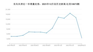 在国内市场上,东风风神在2022年2月的销量为3430辆,同比下降23.69%,环比下降78.62%。2021年02月-2022年02月份,东风风神累计销量为121862辆,较去年同期增长96.4%。