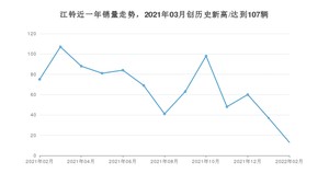 在国内市场上,江铃在2022年2月的销量为13辆,同比下降82.67%,环比下降64.86%。2021年02月-2022年02月份,江铃累计销量为864辆,较去年同期增长319.42%。
