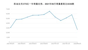 2022年2月,凯迪拉克CT5销量为2632辆,同比下降14.71%,环比下降54.64%。2021年02月-2022年02月份,凯迪拉克CT5销量为65260辆,同比增长32.41%。
