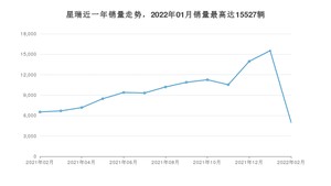 2022年2月,星瑞销量为4999辆,同比下降23.33%,环比下降67.8%。2021年02月-2022年02月份,星瑞销量为124886辆,同比增长279.24%。