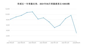 2022年2月,君威销量为2988辆,同比下降63.38%,环比下降68.98%。2021年02月-2022年02月份,君威销量为104537辆,同比下降22.25%。