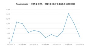 2022年2月,Panamera销量为577辆,同比增长541.11%,环比下降70.86%。2021年02月-2022年02月份,Panamera销量为16626辆,同比增长26.57%。
