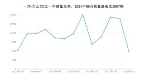 2022年2月,一汽-大众CC销量为890辆,同比下降13.09%,环比下降68.17%。2021年02月-2022年02月份,一汽-大众CC销量为25197辆,同比下降7.47%。