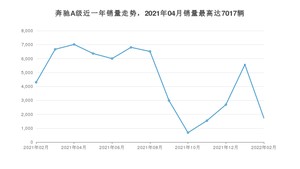 2022年2月,奔驰A级销量为1733辆,同比下降59.65%,环比下降68.88%。2021年02月-2022年02月份,奔驰A级销量为58857辆,同比下降19.85%。