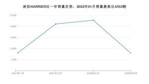 2022年2月,凌放HARRIER销量为1557辆,环比下降65.8%。2021年02月-2022年02月份,凌放HARRIER销量为11935辆,