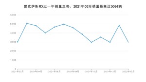 2022年2月,雷克萨斯RX销量为2954辆,同比下降1.7%,环比下降39.21%。2021年02月-2022年02月份,雷克萨斯RX销量为52215辆,同比下降2.4%。