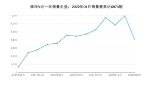 2022年2月,哪吒V销量为4053辆,同比增长494.28%,环比下降41.88%。2021年02月-2022年02月份,哪吒V销量为55562辆,同比增长977.41%。