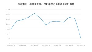 2022年2月,昂科旗销量为515辆,同比下降66.75%,环比下降79.82%。2021年02月-2022年02月份,昂科旗销量为29278辆,同比增长23.67%。