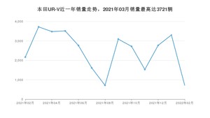 2022年2月,本田UR-V销量为718辆,同比下降66.87%,环比下降78.28%。2021年02月-2022年02月份,本田UR-V销量为32106辆,同比下降1.23%。