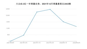 2022年2月,大众ID.3销量为1132辆,环比下降24.83%。2021年02月-2022年02月份,大众ID.3销量为7838辆,