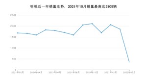 2022年2月,明锐销量为349辆,同比下降79.26%,环比下降81.23%。2021年02月-2022年02月份,明锐销量为21978辆,同比下降33.2%。
