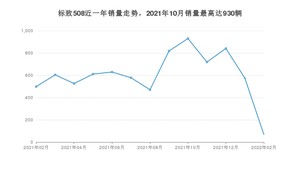 2022年2月,标致508销量为69辆,同比下降86.14%,环比下降87.98%。2021年02月-2022年02月份,标致508销量为7867辆,同比增长33.57%。