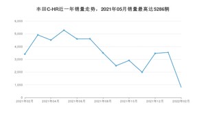 2022年2月,丰田C-HR销量为810辆,同比下降76.24%,环比下降77.16%。2021年02月-2022年02月份,丰田C-HR销量为46056辆,同比下降23.42%。