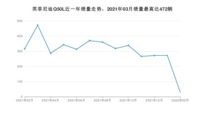 2022年2月,英菲尼迪Q50L销量为29辆,同比下降90.82%,环比下降89.34%。2021年02月-2022年02月份,英菲尼迪Q50L销量为3956辆,同比下降56.09%。