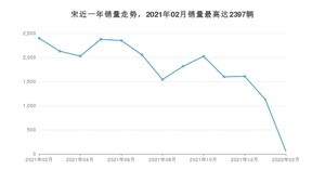 2022年2月,宋销量为58辆,同比下降97.58%,环比下降94.87%。2021年02月-2022年02月份,宋销量为23106辆,同比下降73.27%。