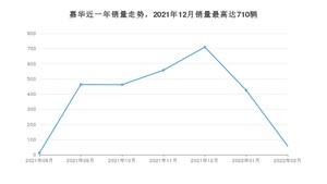 2022年2月,嘉华销量为58辆,环比下降86.35%。2021年02月-2022年02月份,嘉华销量为2687辆,