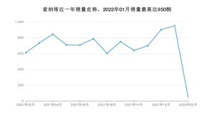 2022年2月,索纳塔销量为40辆,同比下降93.44%,环比下降95.79%。2021年02月-2022年02月份,索纳塔销量为8966辆,同比下降42.75%。