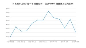 2022年2月,科莱威CLEVER销量为2072辆,同比增长117.65%,环比下降61.2%。2021年02月-2022年02月份,科莱威CLEVER销量为52618辆,同比增长309%。