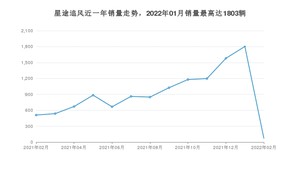 2022年2月,星途追风销量为74辆,同比下降85.49%,环比下降95.9%。2021年02月-2022年02月份,星途追风销量为11840辆,同比增长35.27%。