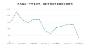 2022年2月,领克02销量为145辆,同比下降84.26%,环比下降81.65%。2021年02月-2022年02月份,领克02销量为10251辆,同比下降54.72%。